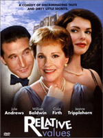 Adapted for the screen from the 1951 play that revived playwright Noel Coward’s flagging reputation, Relative Values is another wit-laden addition to the English comedy of manners oeuvre. Set sometime during the mid-20th century, the film opens on the French Riviera, where nebbish English aristocrat Nigel (Edward Atterton) has just announced his engagement to vulgar American movie star Miranda Frayle (Jeanne Tripplehorn). Nigel’s news dismays both his mother, Felicity (Julie Andrews), and Miranda’s former lover, fellow screen icon Don Lucas (William Baldwin). Felicity manages to strap on a stiff upper lip while Don drowns his sorrows in booze and flees to England. Meanwhile, Felicity’s personal assistant Moxie (Sophie Thompson) makes the rather startling announcement that Miranda is her estranged younger sister. Everything looks set to go pear-shaped until Felicity’s cunning butler Crestwell (the ever-cunning Stephen Fry) comes up with an ingenious plan that will turn the tables in Moxie’s favor. After Nigel returns to his mother’s estate with Miranda in tow, Crestwell’s plan is complicated by the unexpected arrival of an inebriated Don at a dinner party that Felicity is throwing for the engaged couple.